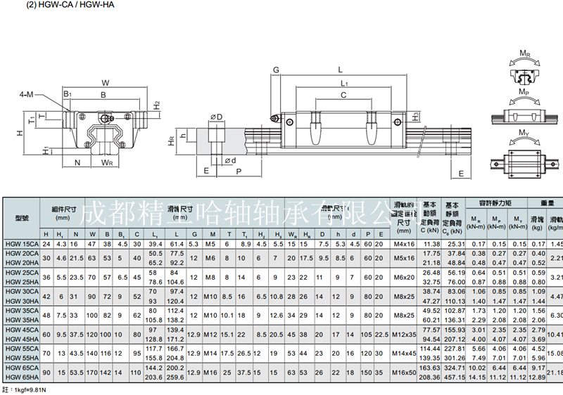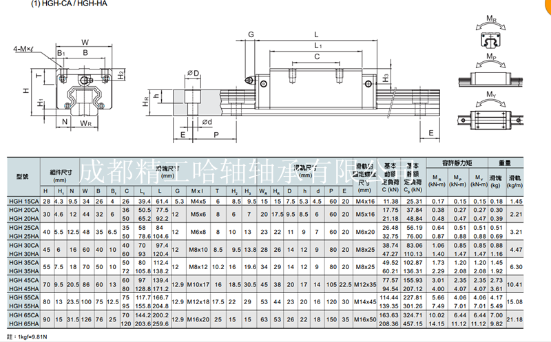 成都精工哈轴轴承有限公司专业销售台湾上银HIWIN直线导轨,能准确无误的阐述直线导轨HG40直线滑块HGH45CA/HGW45CA的参数详细,如有需要请与销售人员联系028-87629507 87629517。