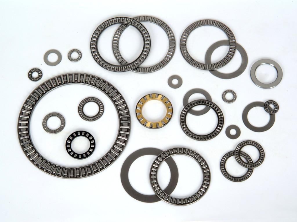推力轴承由带滚针或圆柱滚子或滚珠的推力保持架组件和推力垫圈组成。滚针和圆柱滚子受到推力保持架的保持和引导。在与不同系列的DF推力轴承垫圈一起使用时,则可为轴承的配置提供许多不同的组合。由于选用高精度圆柱滚子(滚针)增加了接触长度,使得此轴承在很小的空间下可获得高载荷能力和高的刚度。另一优点是,如果相邻零件表面适于作滚道面时可省去垫圈,可使设计紧凑,DF推力滚针轴承和推力圆柱滚子轴承采用的滚针和圆柱滚子的圆柱面为修形面,可减少边缘应力,提高使用寿命。